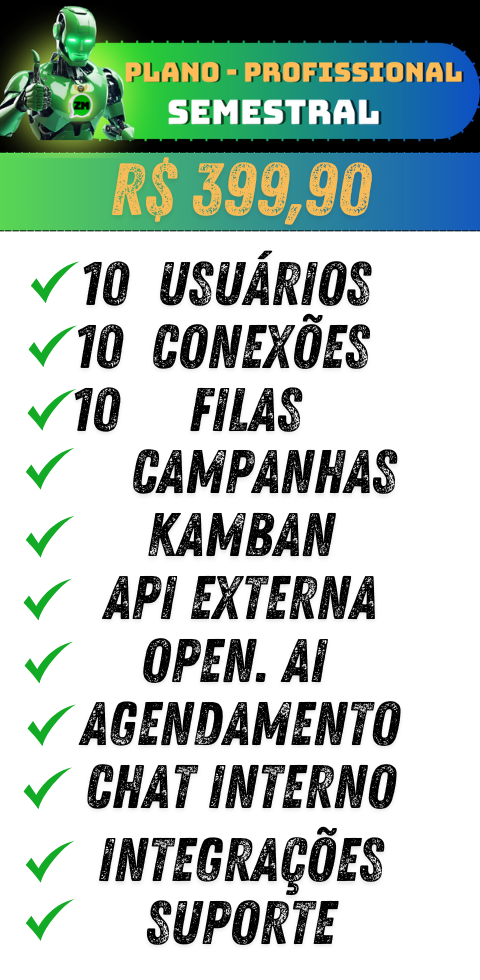 A solução completa para otimizar o atendimento ao cliente no WhatsApp! Nossa plataforma oferece recursos avançados, como chatbot, envio de mensagens em massa e gerenciamento centralizado de conversas.